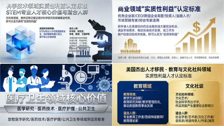 这里的“实质性利益”并非仅指经济效益,美国移民局官网明确说明,申请者可在商业、创业、科学、技术、文化、卫生或教育等多个领域,证明自身工作的核心价值,不同行业的认定偏向也会有所差异。