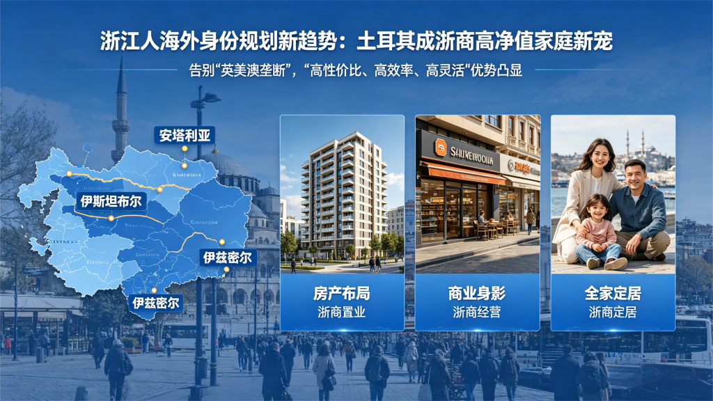 浙江人海外身份规划早已告别“英美澳垄断”时代!近年来,土耳其凭借“高性价比、高效率、高灵活”的核心优势,成为浙商高净值家庭的新宠——伊斯坦布尔、安塔利亚、伊兹密尔等城市,随处可见浙商的房产布局、商业身影,甚至全家定居的痕迹。
